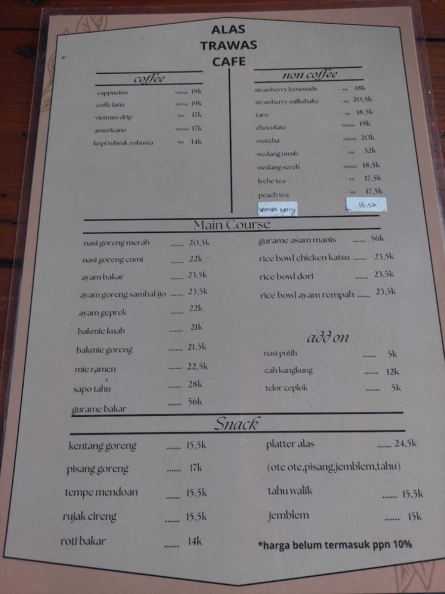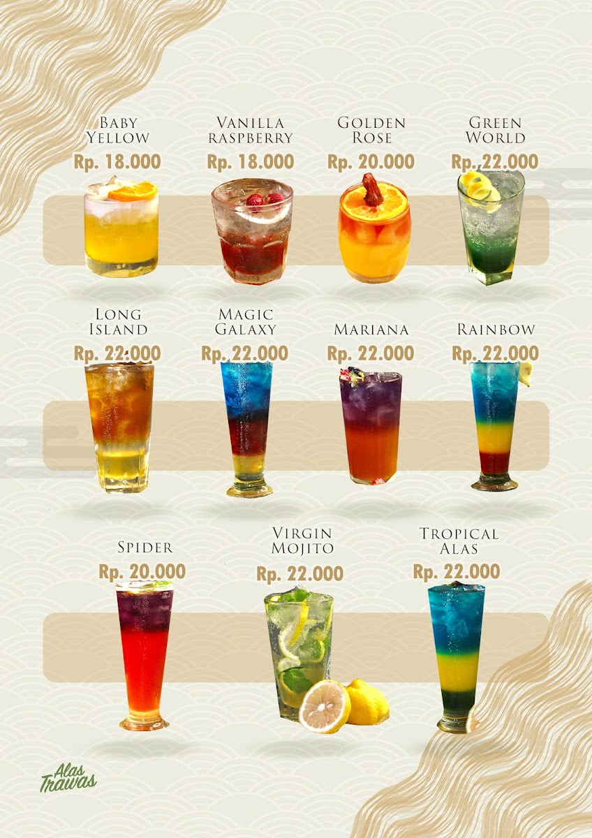 Welcome to Alas Trawas, an inviting gem nestled in the heart of Indonesia's Trawas, Mojokerto. This restaurant effortlessly blends a cozy indoor setting with refreshing outdoor seating, surrounded by the serene embrace of nature. Diners can indulge in a diverse menu that caters to all, featuring delightful dishes like the highly acclaimed Alas Platter, and sweet treats from their unique gelato corner, boasting flavors such as sinom and ketan ireng.